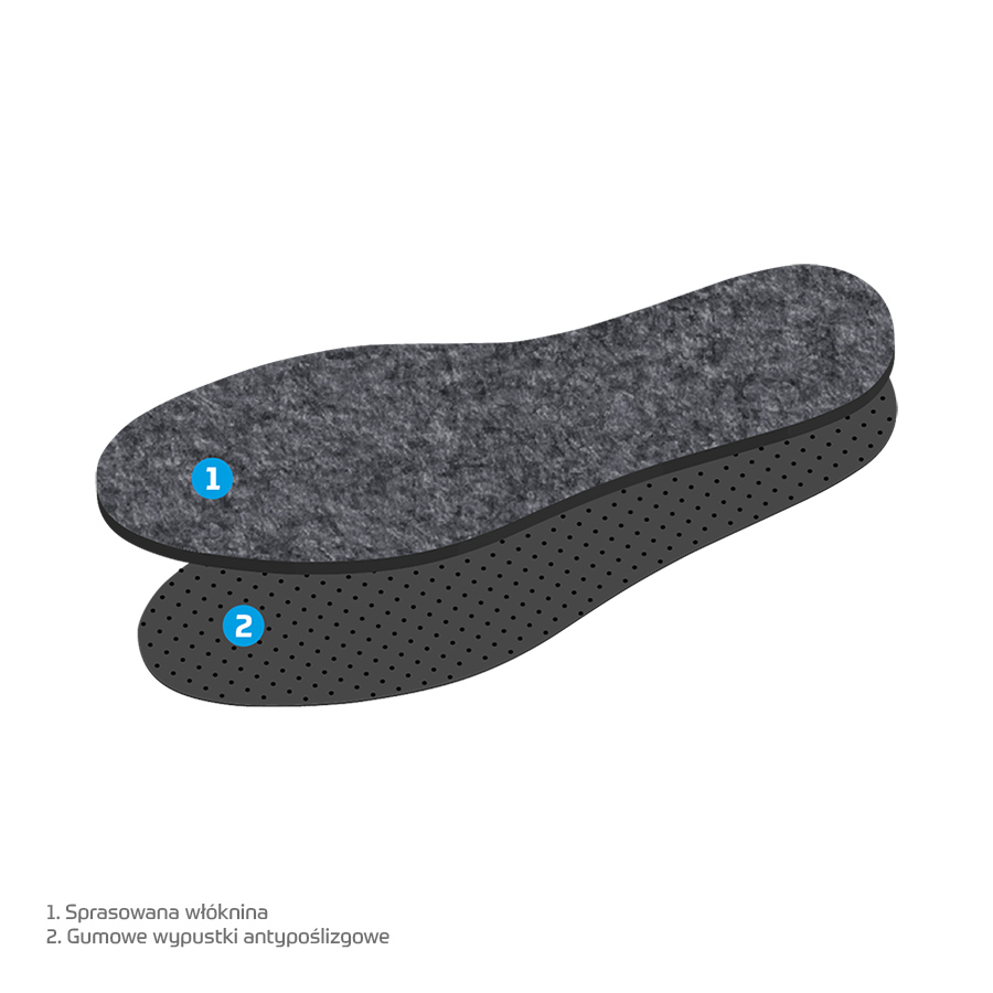 Wkładki FILCOWE – JEŻYK są idealne dla osób aktywnych lub pracujących w ciężkich warunkach. Wykonane z wysokogatunkowej włókniny i warstwy spodniej w postaci lateksowych wypustek. Włóknina chroni stopy przed zimnem i skutecznie wchłania wilgoć, a także łagodzi nacisk stopy na podłoże. Dzięki lateksowym wypustkom wkładka nie przemieszcza się w obuwiu.