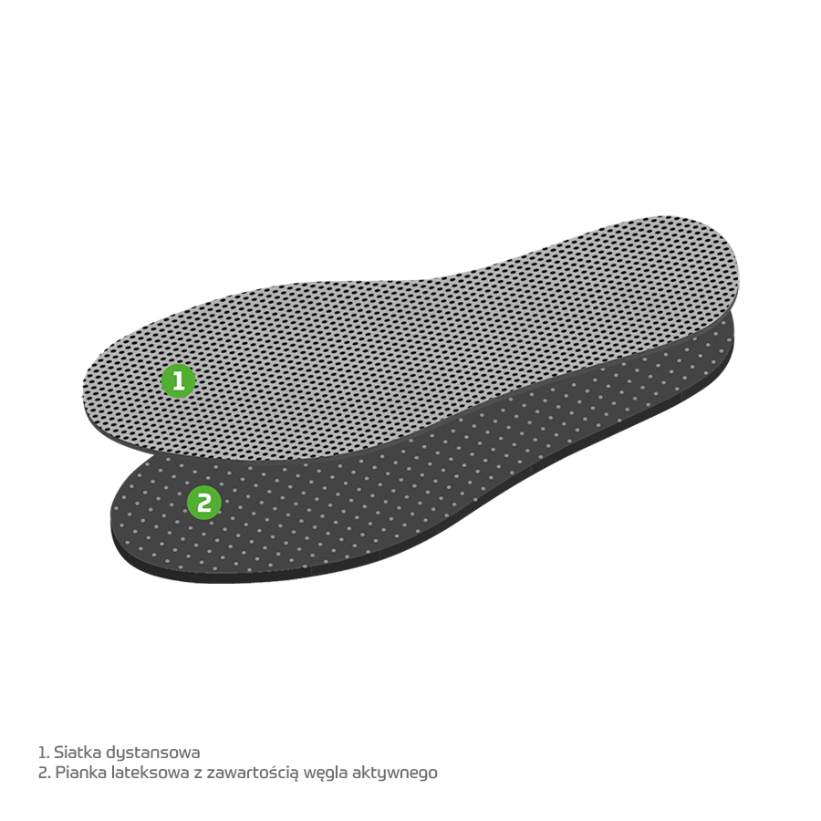 Wkładki KOMFORT SPORT są idealne dla osób aktywnych lub pracujących w ciężkich warunkach. Wykonane z tkaniny dystansującej o specjalnej warstwowej budowie w formie siatki oraz pianki lateksowej. Dzięki zastosowanym materiałom wkładki poprawiają przepływ powietrza w obuwiu ograniczając nieprzyjemne zapachy oraz potliwość stóp. Pianka lateksowa w połączeniu z siatką dystansową znacząco redukuje mikrowstrząsy powstałe podczas chodu, zwiększają komfort.
