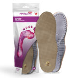 Wkładki posiadają wyściółkę z pro-skóry, która zapewnia dobre odprowadzenie potu i jest bezpieczna dla wrażliwej skóry. Taśma samoprzylepna umożliwia wklejenie wkładki w obuwiu, co uniemożliwi jej przesuwanie się.