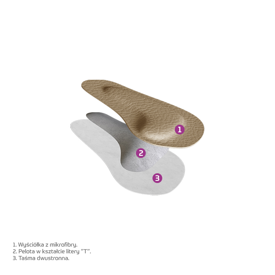 Pelota T-MED w kształcie litery ‘T” to wyrób medyczny dedykowany osobom z płaskostopiem poprzecznym i haluksem. Odciąża głowy kości śródstopia (II,III i IV) i skutecznie wspiera łuk poprzeczny stopy.