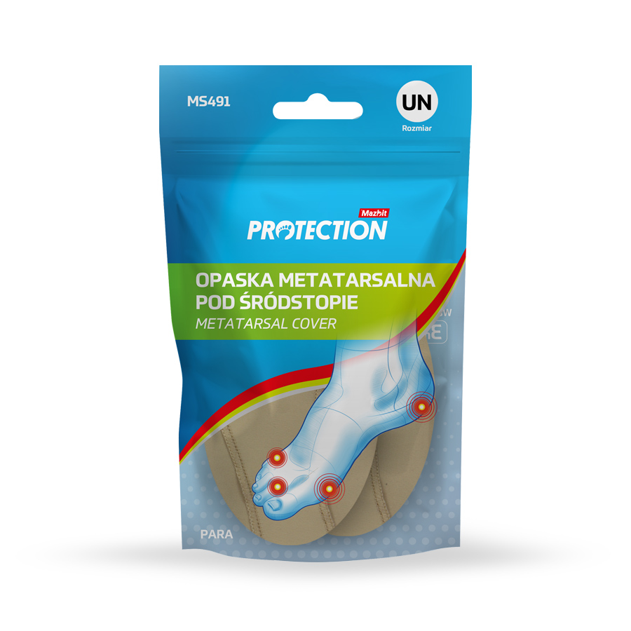 Elastyczna osłona metatarsalne przeznaczona dla osób cierpiących na zespół przeciążenia przodostopia, odczuwających dokuczliwy ból w okolicy głów kości śródstopia. Żelowa poduszeczka osłania śródstopie, amortyzuje wstrząsy zapewniając natychmiastową ulgę.