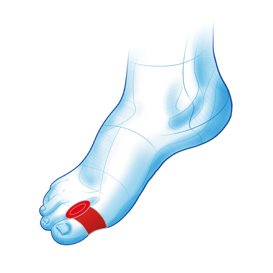 Klin koryguje do prawidłowego ułożenia palucha i separuje go od drugiego palca stopy. Pierścień zakładany na paluch zabezpiecza przed przemieszczaniem klina.